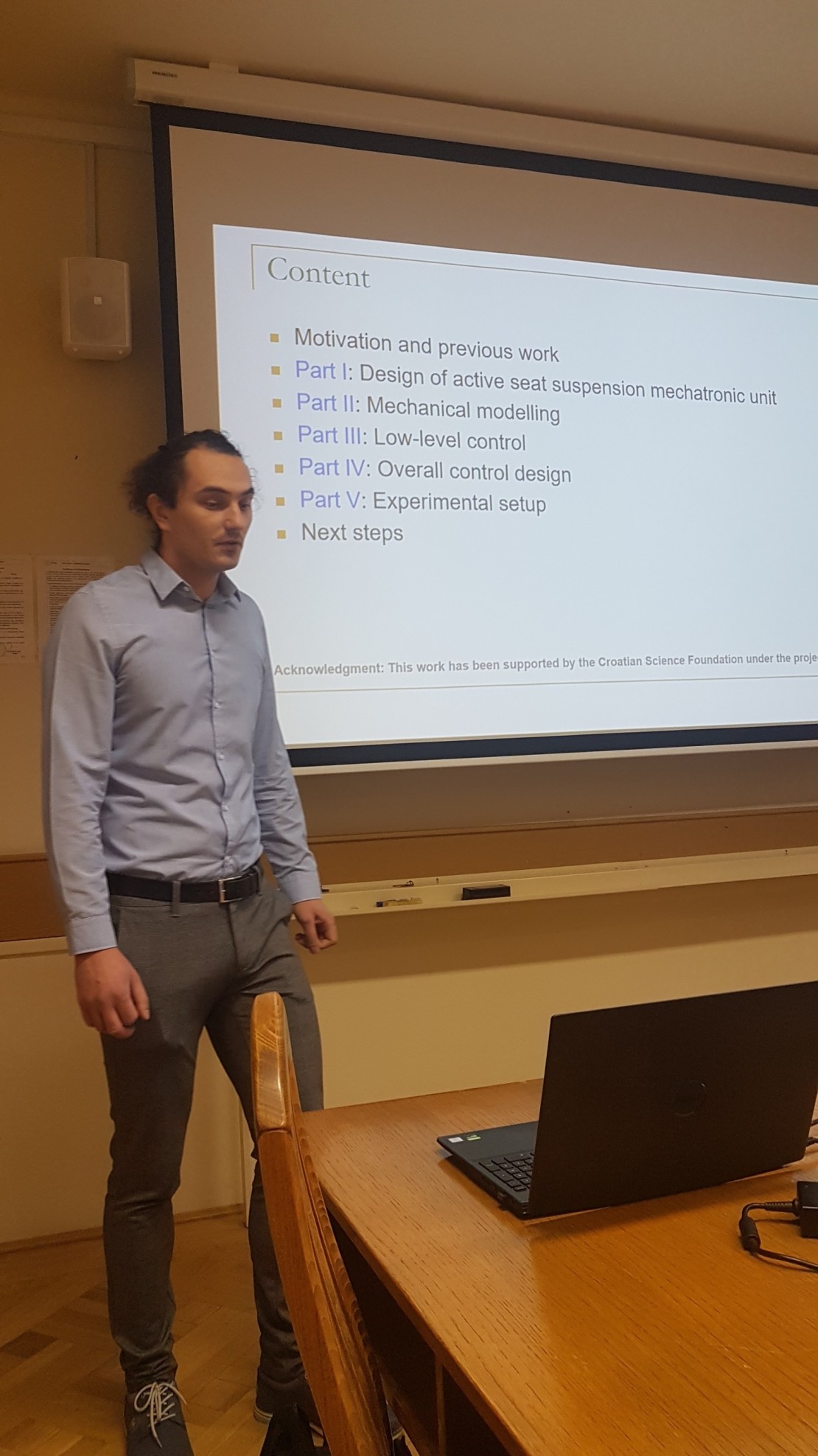 1. listopada 2024.: Od 1. listopada 2024. na projektu je uposlen doktorand mag. ing. Ivan Ruškan, a sudjelovat će u aktivnostima projektiranja i ispitivanja sustava upravljanja aktivnim ovjesom sjedala, uključujući podsustav podređene regulacije.